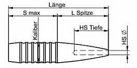 Mit spezieller Secant Ogiven Spitzenform und sehr geringer smax (Setztiefe) um den Pulverraum besser nutzen zu können.